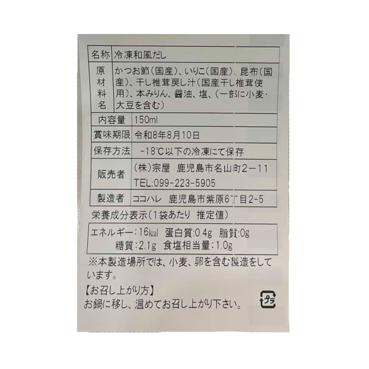 鰹節(国産)、いりこ(国産)、昆布(国産)、干し椎茸戻し汁(国産干し椎茸使用)、本みりん、醤油、塩、(一部に小麦・大豆含む)